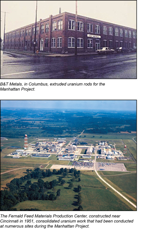 After World War II, Ohio continued to play a major part in the nation’s atomic energy program. However, much of the work that had been contracted out to privately owned businesses was consolidated into government-owned facilities. Mound Laboratories took over the polonium work that Monsanto had conducted in Dayton. The Fernald Feed Materials Production Center took over uranium work previously performed by Harshaw Chemical, B&T Metals, and Baker Brothers.