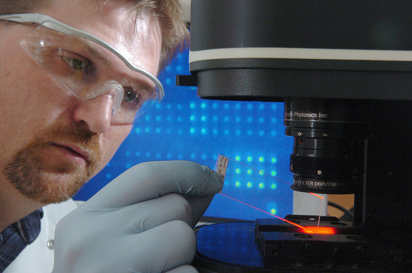 Biochemist Dan Schabacker uses microbial forensics technology -- using proteins in microbes to get clues about how they were created -- to detect where organisms, such as anthrax spores, came from. | Courtesy of Argonne National Laboratory