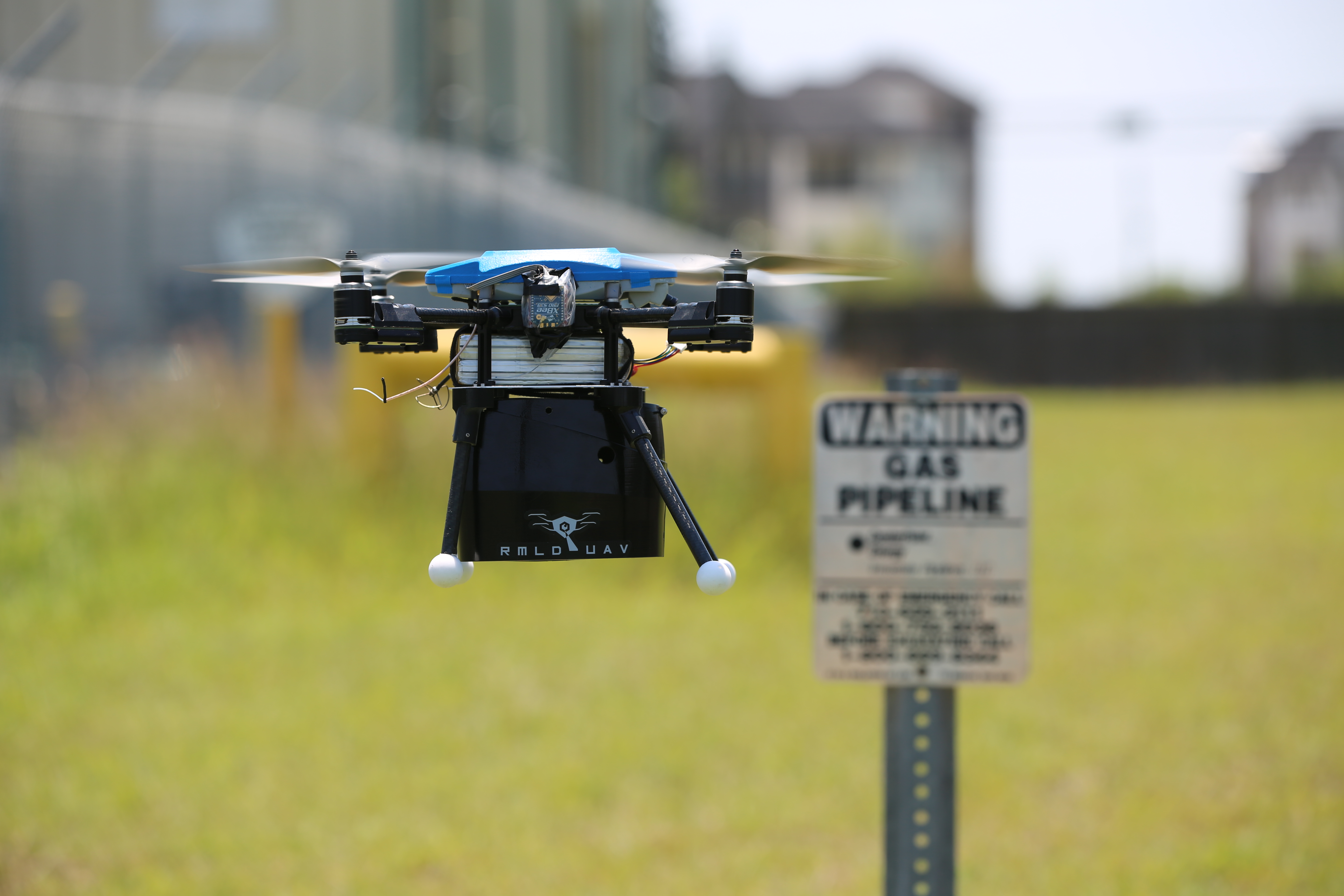 The project team co-developer, Heath Consultants Inc., was invited to test the pioneering device at two sites in Texas that were heavily damaged by the powerful storm — one in Port Aransas and another in Beaumont. The RMLD-UAV was used to survey gas lines, some submerged beneath a river, allowing utilities to ensure the integrity of this important infrastructure rapidly and without putting response crews at risk.