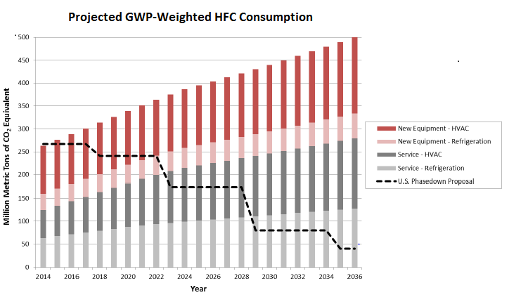 The planned research effort would support the U.S. hydrofluorocarbon (HFC) phasedown proposal, which targets an 85% reduction by 2035 compared to a 2014-2016 average baseline.