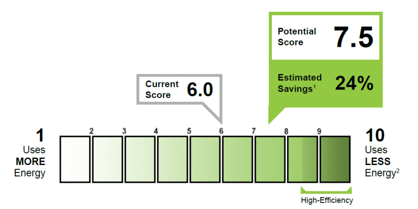 - A score ranging from 1 to 10 based on the energy efficiency of the building envelope and the mechanical, electrical, and service hot water systems