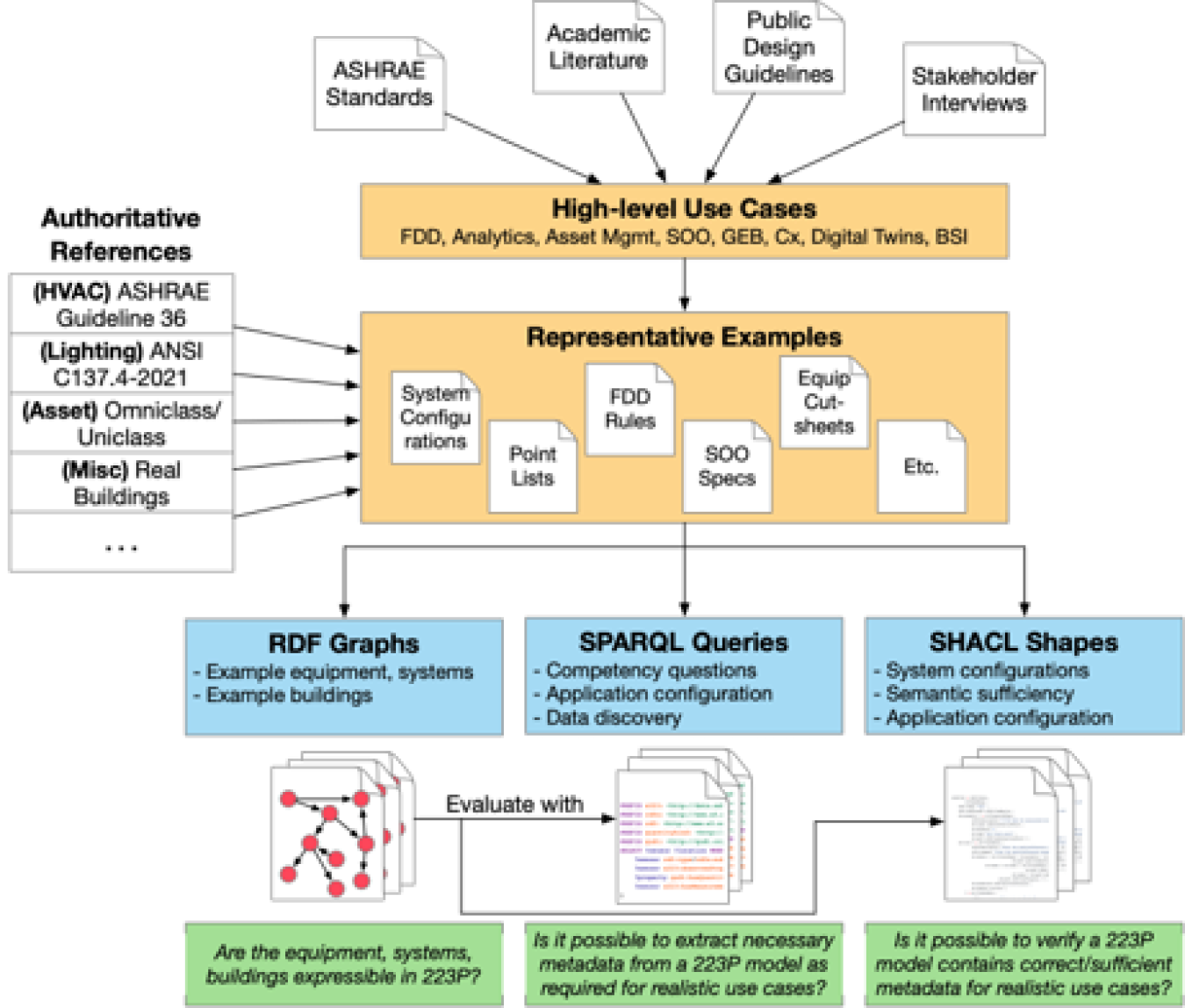 There are several established and emerging metadata standards, including Haystack, the Brick Schema, and possibly others. Some are semantic. Others are in the process of becoming semantic. None is a consensus standard. This project is developing such a standard, a low-level, granular Semantic Modeling schema for buildings that can be used to formally define existing metadata schemas and tie them together. ASHRAE 223P “Semantic Modeling for Building Control and Monitoring Applications” is being developed with extensive participation from industry and is aiming to eventually become an International Standards Organization (ISO) standard.