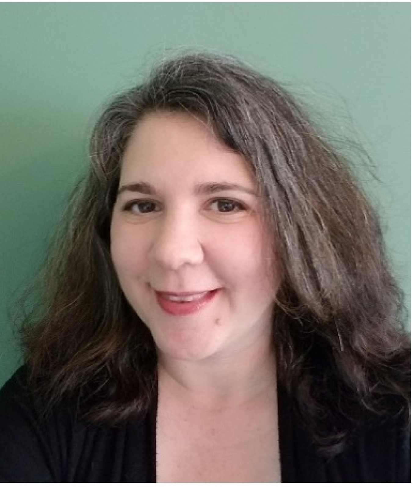 A woman sits smiling at the camera.