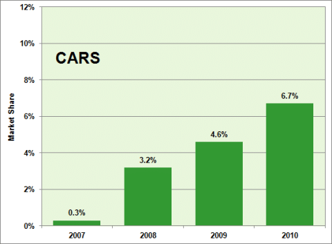 Market Share of New Cars and Light Trucks with GDI, Model Year 2007 – 2010
