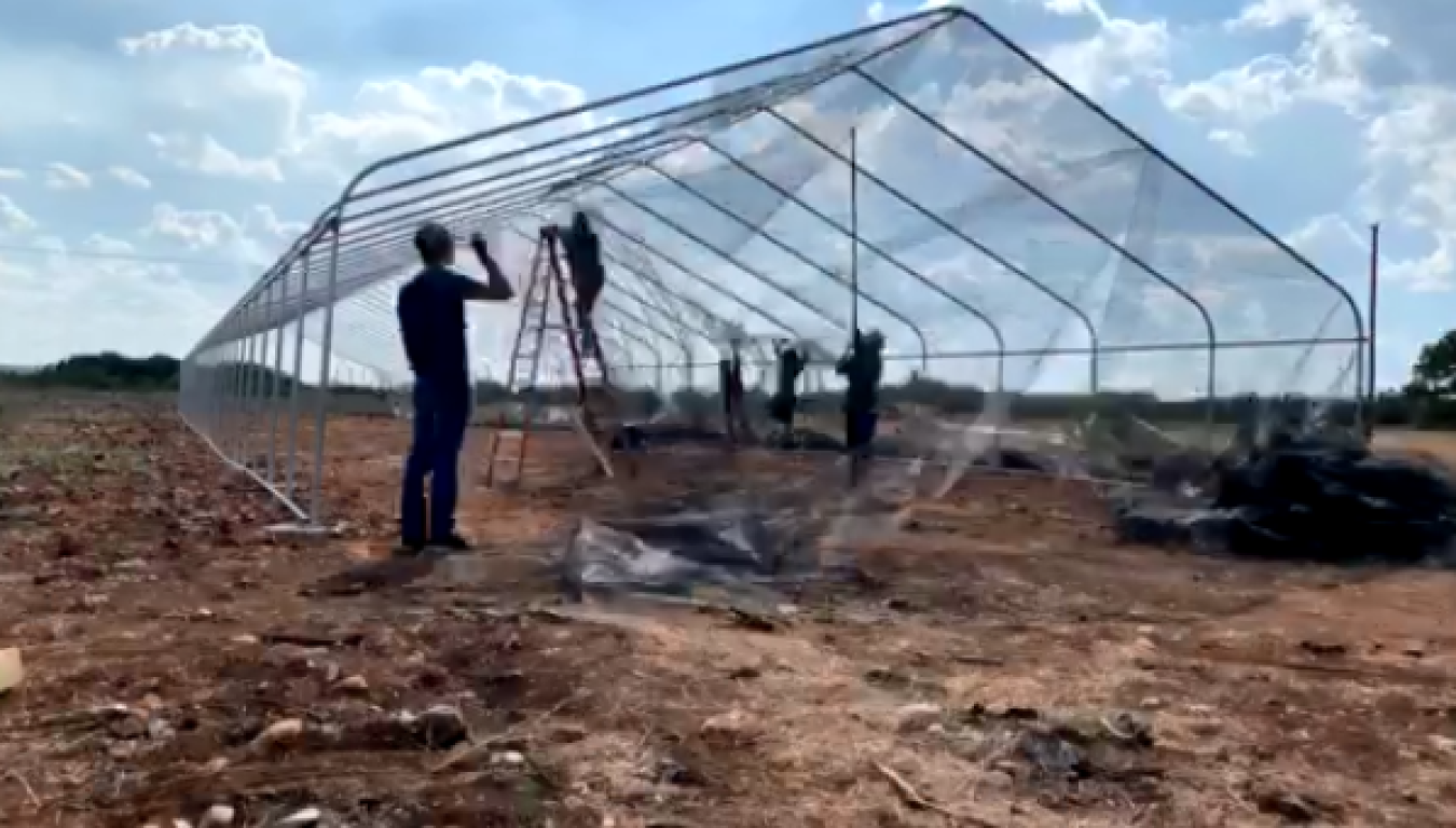 Members of the project team assemble an open-air flight cage on the campus of Texas State University. Image: Rob Tyler, Texas State University