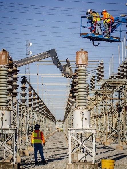 Four Rivers Nuclear Partnership workers dismantle part of the C-537 Switchyard. Last year, EM deactivated the last of the four switchyards that previously provided electrical power to the site.