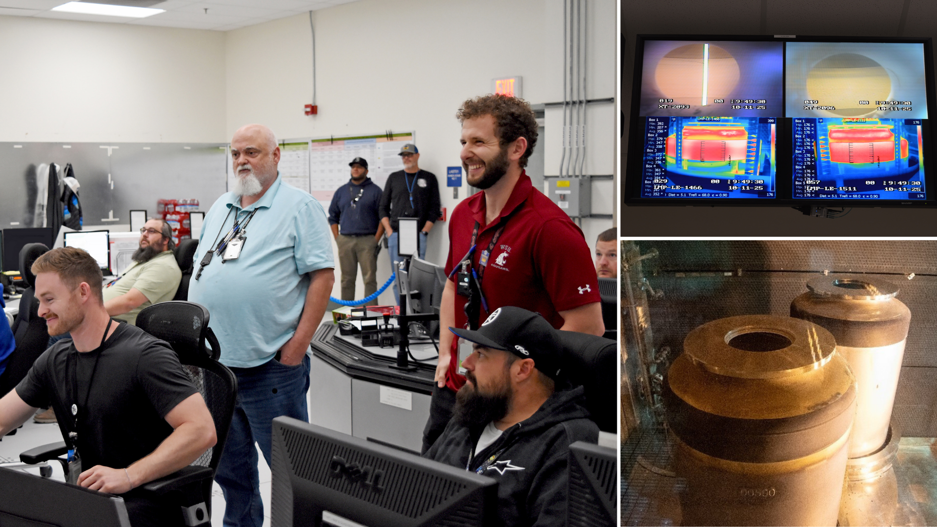 A collage of images of Hanford employees observing a pour at the Waste Treatment Plant