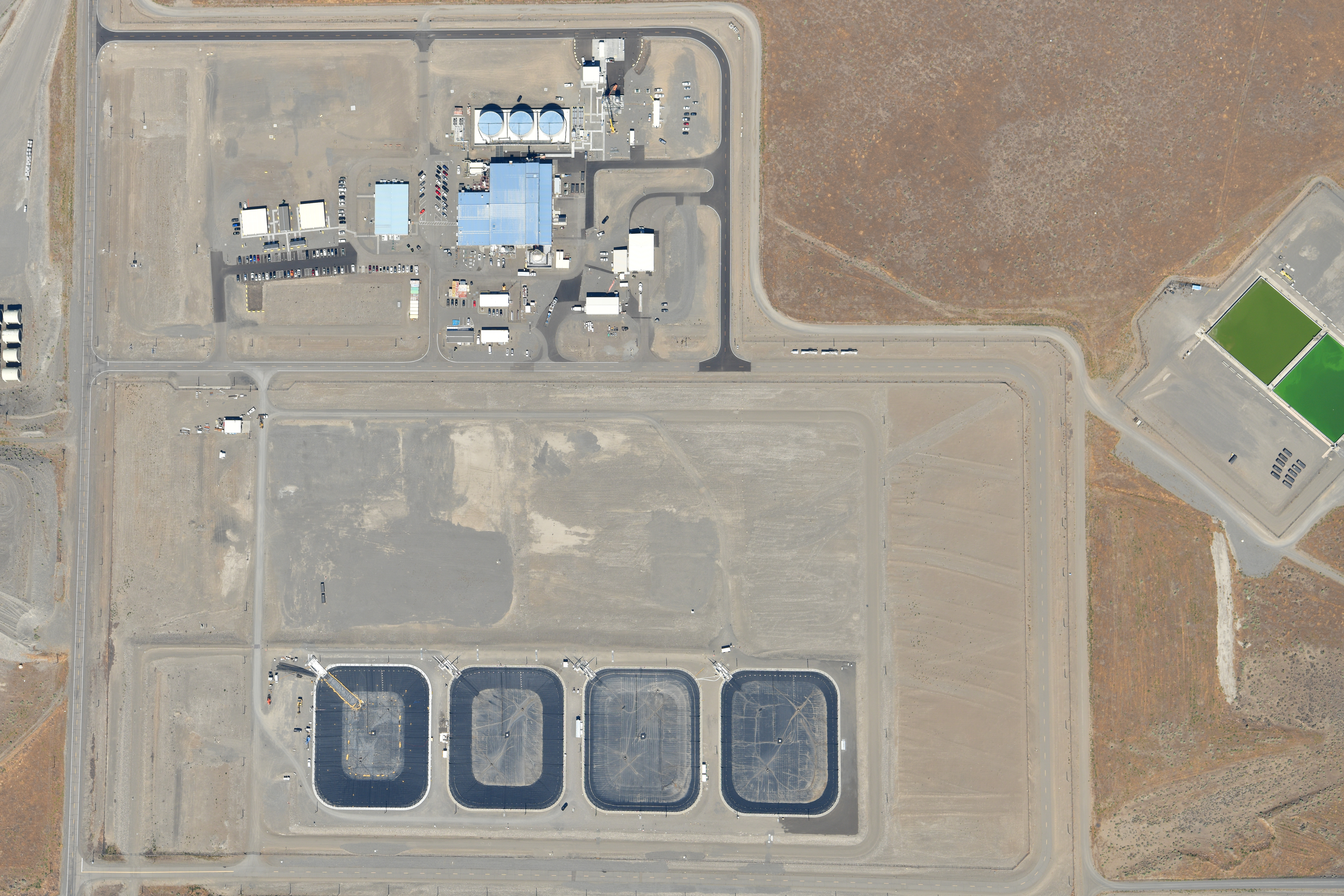 The latest processing campaign at the Hanford Site’s Effluent Treatment Facility lowered the level of one wastewater storage basin, the second basin from the right shown here, by almost 17 feet.