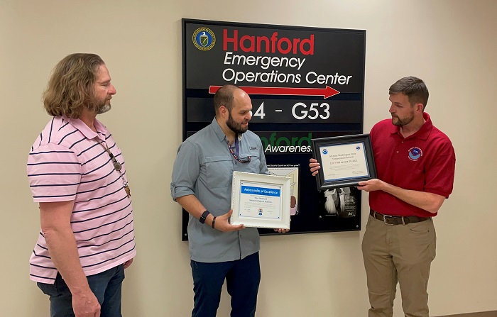 “The program is meant to recognize those who demonstrate exceptional mission commitment to protecting lives and property,” said NWS Meteorologist Marc Austin. “The Hanford Meteorological Station does a fantastic service for the Hanford Site and the Tri-Cities region to promote weather safety.”