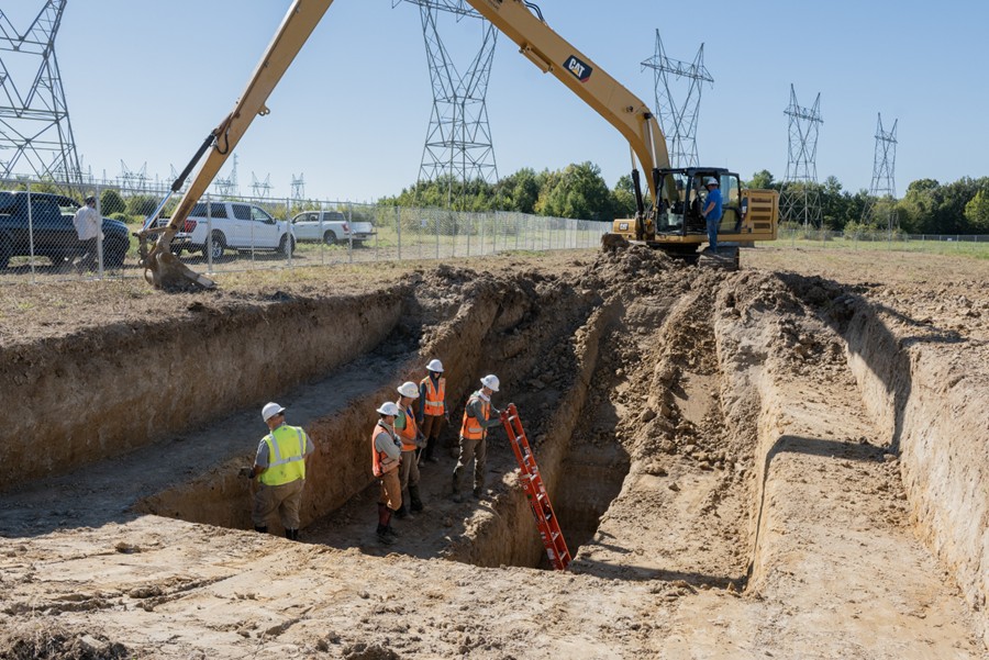 EM, the Kentucky Research Consortium for Energy and the Environment and the Kentucky Geological Survey dug a 250-foot-long, 13-foot-deep trench. Geologists then photographed, mapped and logged the soil in the walls of the trench, capturing the structure and sequence of sediment, informing engineering designs and options for future cleanup.