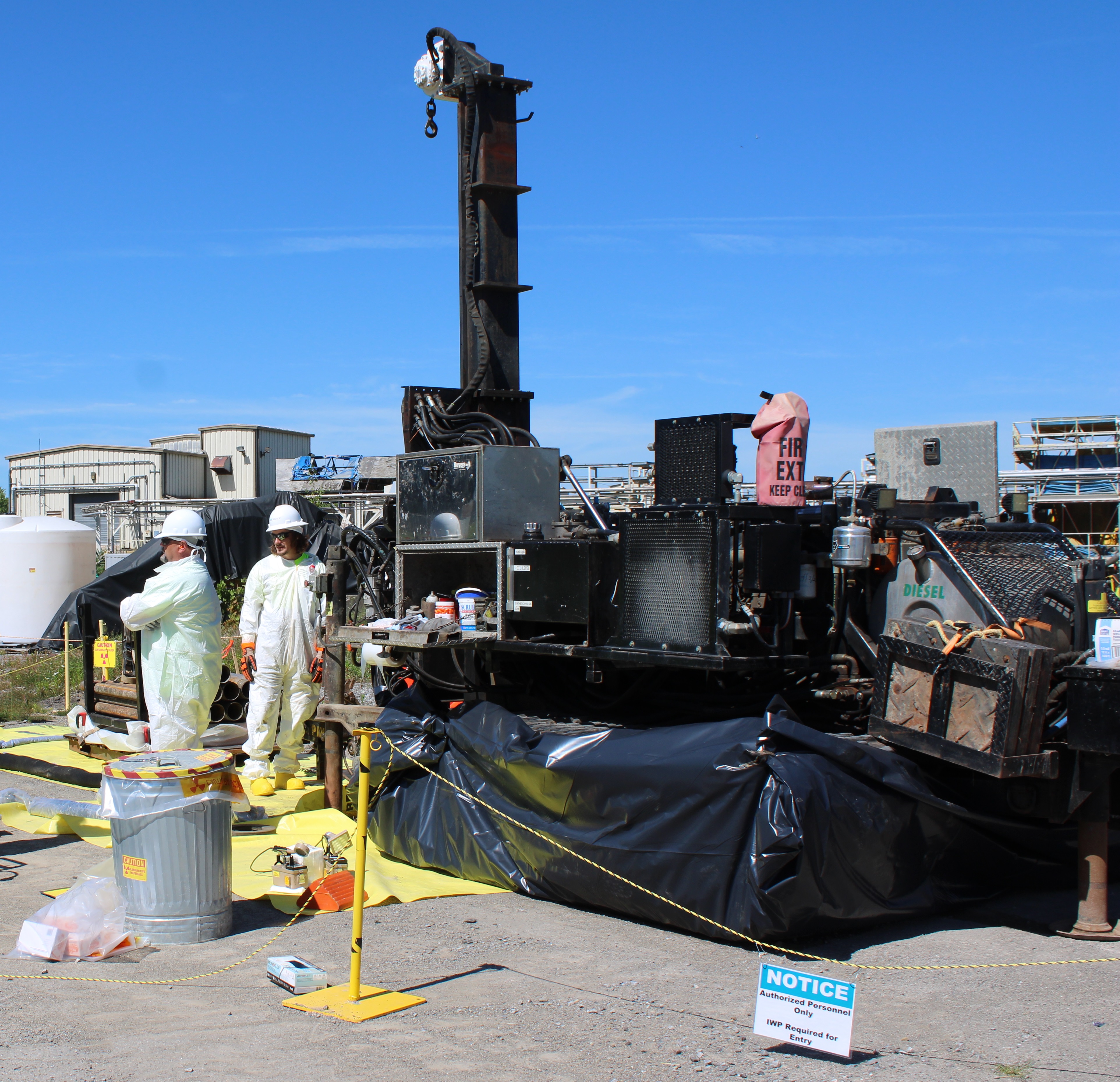 November 18, 2025Workers at the West Valley Demonstration Project use a boring machine to remove soil samples for radiological characterization at the West Valley Demonstration Project. The sampling is being conducted prior to remediating the soil at the former location of the Main Plant Process Building, which cleanup crews removed in June.