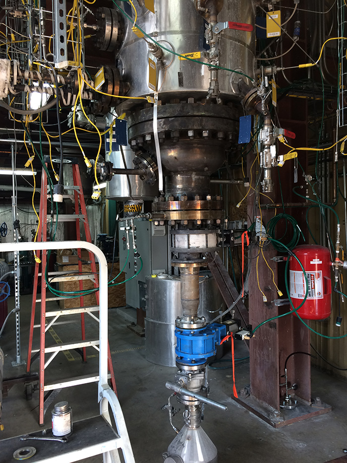 Thompson said the pilot plant continued to produce wall-scale on the interior of its reaction vessel, just like the IWTU did in its six demonstrations. But the varying conditions revealed trends that help the team understand the formation mechanisms. Under some conditions, minimal scale formed. The scale, resembling bark, has the potential to produce fluidization challenges in the IWTU, but the Hazen testing is giving engineers a better understanding why it forms, if and how it can be minimized, and its effect on the waste treatment process.
