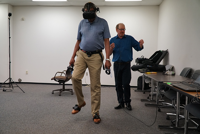 Savannah River Remediation (SRR) is implementing a virtual reality program to help new employees get a feel for walking in unfamiliar and unusual environments where tripping hazards can be common. In virtual reality, users wear a headpiece with goggles, foot and belt sensors, and hold hand controllers while “walking” through the simulations.