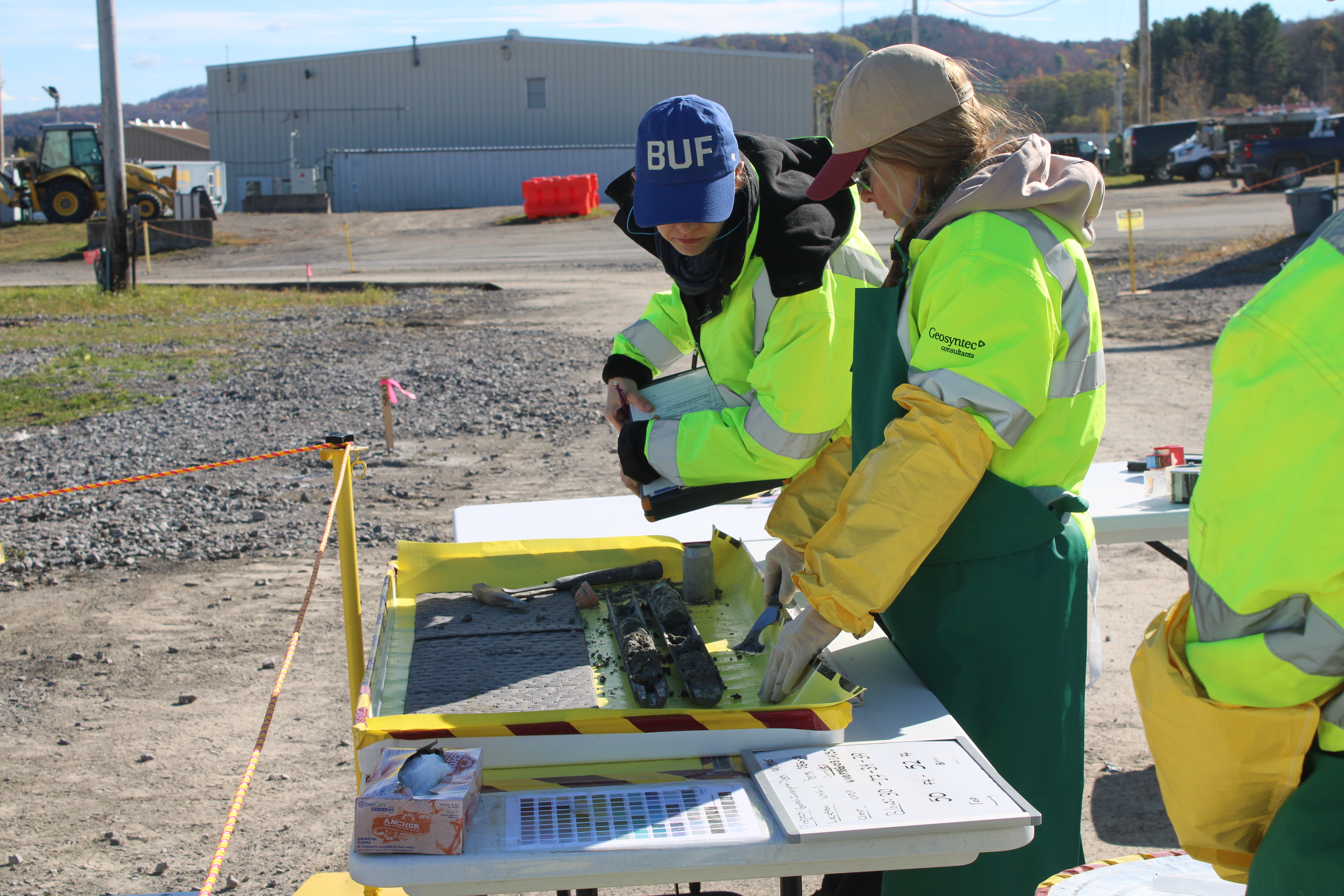Geologists log samples at the geotechnical boring worksite at the West Valley Demonstration Project. The samples will be sent offsite for analysis.