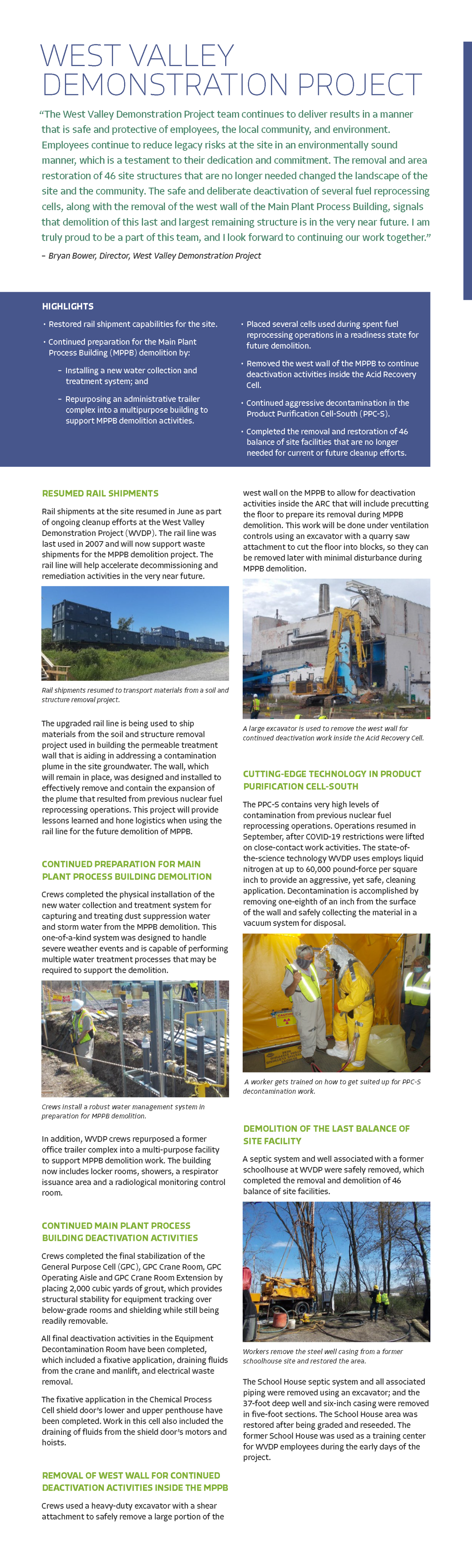 West Valley Demonstration Project (WVDP) 2021 Year in Review