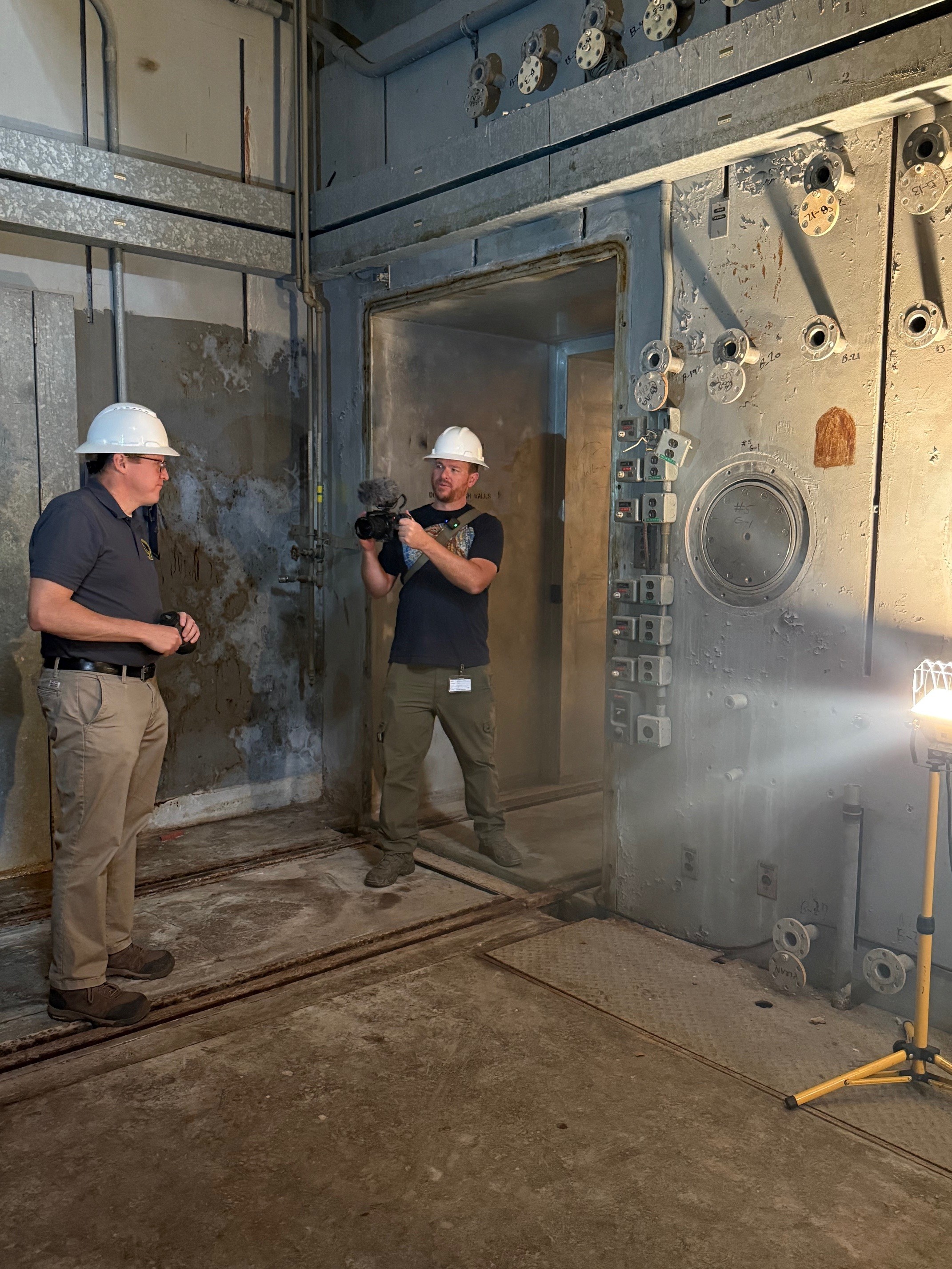 Social media influencer Andrew Walker returned to the site in July to collect footage for a video about DOE’s System for Nuclear Auxiliary Power (SNAP) program. He toured the basement of Building 4024, also known as the SNAP Environmental Test Facility, to see where research and development was conducted, including SNAP-10. Read more about the SNAP program.