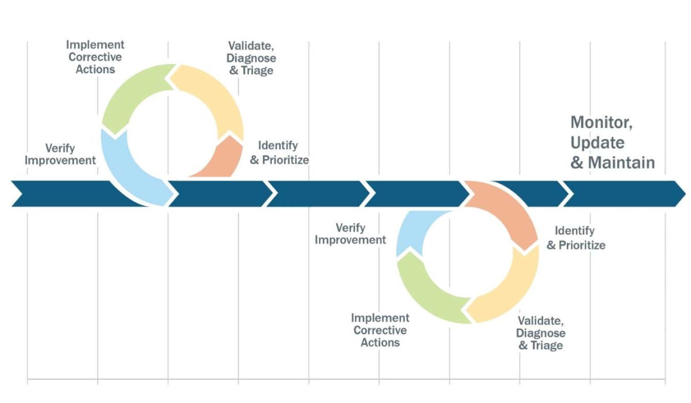 The EnMS team then uses the EMIS and underlying systems to confirm the validity of improvement opportunities, determine root causes, and triage the opportunities into implementation categories. The data analysis and visualization tools within the EMIS can help validate issues and determine root causes. A survey of the underlying systems may be required as a second step.