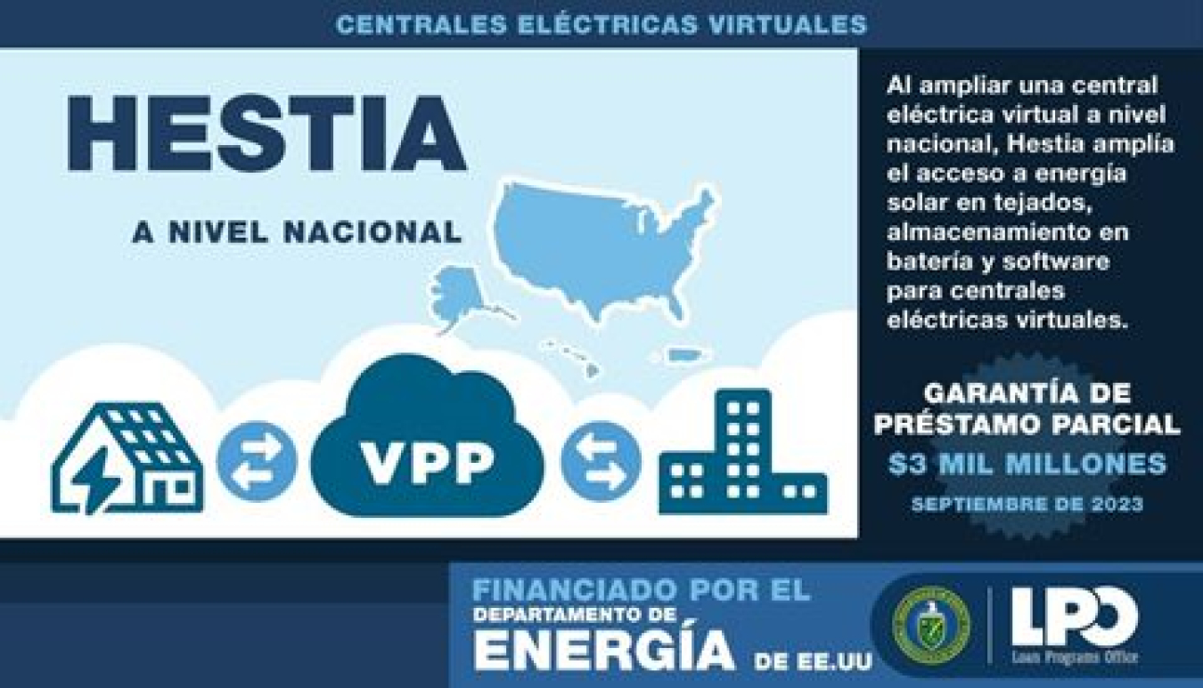 El 28 de septiembre de 2023, la Oficina de Programas de Préstamos (Loan Programs Office, LPO) del DOE anunció el cierre de una garantía de préstamo parcial de $3 mil millones para el Proyecto Hestia de Sunnova Energy Corporation. El Proyecto Hestia proporcionará préstamos para sistemas de energía limpia a aproximadamente 75.000 a 115.000 hogares a través de todo los Estados Unidos, incluyendo Puerto Rico. El Proyecto Hestia incluirá al menos el 20% de los préstamos a clientes con una puntuación de crédito de 680 FICO o menos, y hasta 20% de los préstamos a propietarios de viviendas en Puerto Rico.