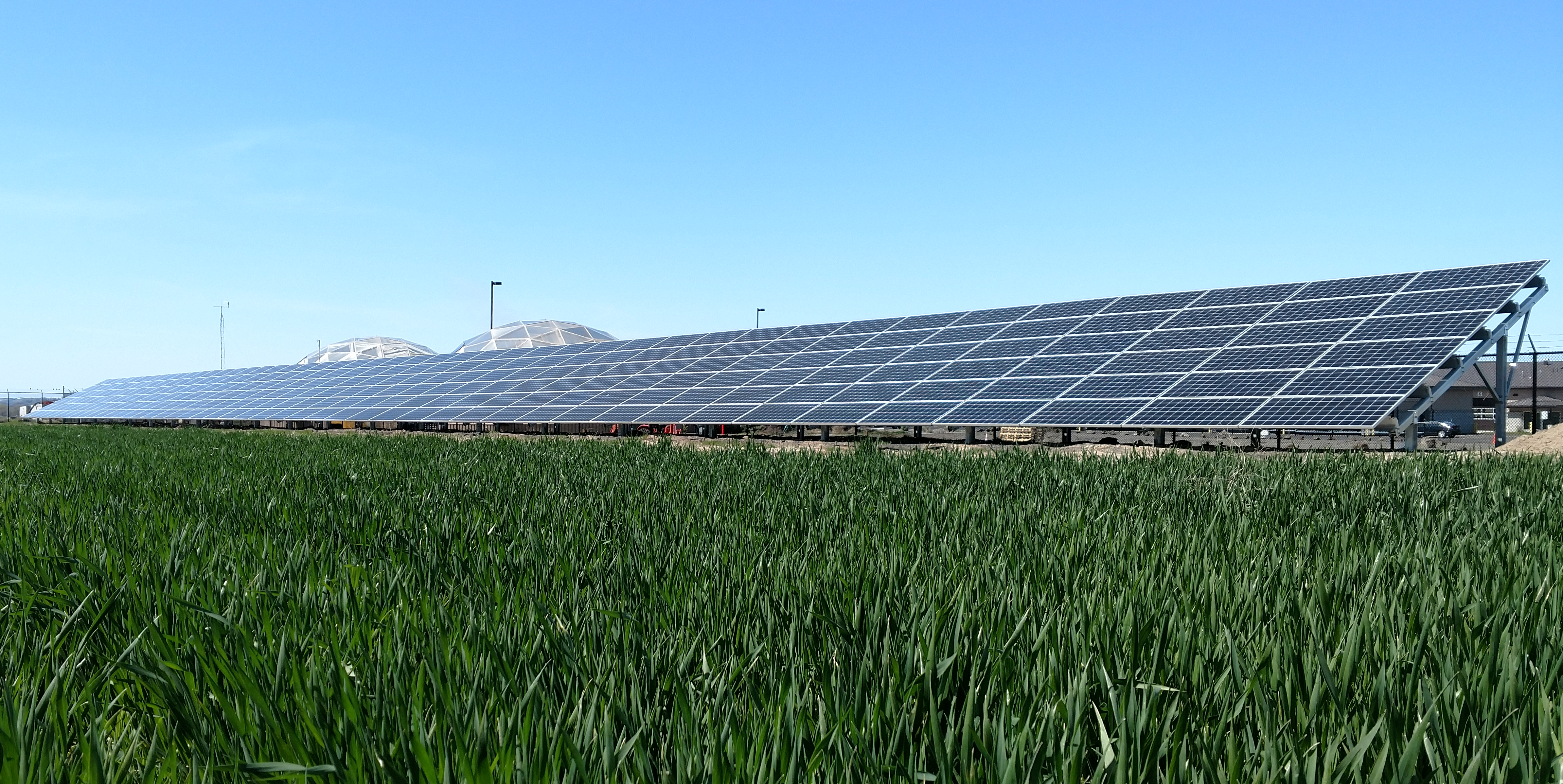 The Ántukš-Tińqapapt or “sun trap” solar array recently installed by the Confederated Tribes of the Umatilla Indian Reservation in Oregon.