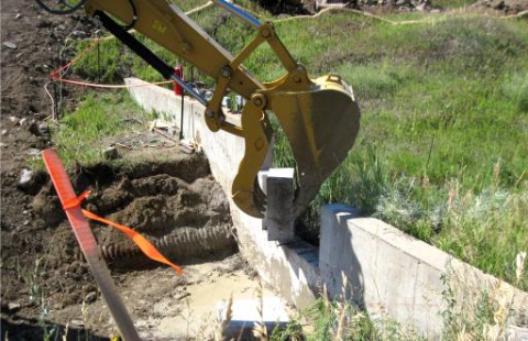 Excess soil generated by grading the area downstream of the diversion structure and clean, imported fill was used to raise the elevation of the area upstream of the diversion structure to above the current head gate elevation. Pieces of the current GS10 flume, pipes, head gates and associated hardware, and concrete that were removed are being properly managed as waste, or recycled if eligible for recycling.