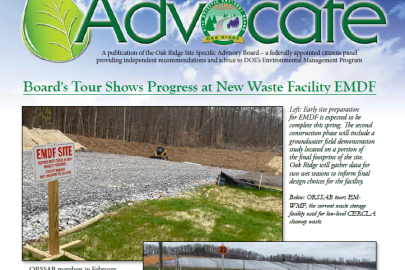 The board's mission is to provide informed advice and recommendations concerning site specific issues related to the DOE EM program. To provide unbiased evaluation and recommendations on DOE’s cleanup efforts related to the Oak Ridge site, the Board seeks opportunities for input through collaborative dialogue with the communities surrounding the Oak Ridge Reservation, governmental regulators, and other stakeholders.