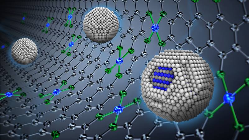Innovative approaches for reducing the amount of platinum in catalysts, while maintaining the high activity and stability that platinum provides, are of intense interest. The costly metal currently plays a crucial role in catalyzing multiple reactions in PEMFCs, including the breakdown of oxygen to form water. Scientists at Argonne National Laboratory’s Center for Nanoscale Materials (CNM), a DOE Office of Science user facility, are working with scientists and engineers at Argonne, Purdue University, and Shanghai Jiao Tong University to advance this research. After the team created the catalysts, the team characterized them using CNM’s aberration-corrected, high-resolution transmission electron microscope and spectroscopy capabilities at Argonne’s Advanced Photon Source, and modeled using CNM’s Carbon, a high-performance computing cluster. Together the team developed a synergistic catalytic system that involves platinum-cobalt nanoparticles and a platinum-group-metal-free (PGM-free) substrate.