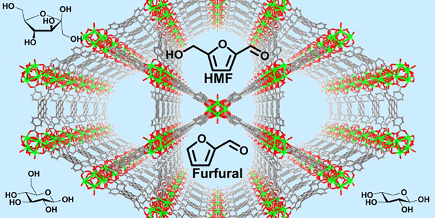 In creating fuels from the woody materials of plants – the most abundant source of biomass on earth – scientists must separate the desirable sugars from byproduct chemicals including toxins. A team from the University of California at Berkeley, Northwestern University, and Hokkaido University discovered a honeycomb-like structure called NU-1000 that selectively adsorbs toxic furanics, while completely excluding desirable sugars from the same watery mixture. The NU-1000 even works when the sugar is present in several-hundred-fold excess.
