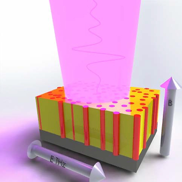 Can we build novel memory devices to do data reading and writing at terahertz frequencies so that our personal devices can operate at a much higher speed? A team of researchers from the Center for Integrated Nanotechnologies and universities in the United Kingdom found a colossal magnetoresistance at terahertz frequencies at room temperature in high-quality functional nanocomposites. The terahertz conductivity of nanocomposites can be controlled by both an applied magnetic field and temperature. For example, in the presence of an external field (for example, 2 terahertz), the terahertz conductivity changes over two orders of magnitude. These findings demonstrated a new approach of utilizing optic pulses at terahertz frequencies to probe magnetoresistance, which can revolutionize the design of future memory devices. Different from conventional colossal magnetoresistance observed at high magnetic fields and low temperatures, this newly developed colossal magnetoresistance at terahertz frequencies can be seen at room temperature and intermediate magnetic fields. The team studied the underlying physical mechanisms with terahertz time-domain magnetospectroscopy. Researchers can use the results to guide the future development of novel functional thin films with better performance. The experiments show that colossal magnetoresistance at terahertz frequencies may be used in extremely small electronics and in terahertz optical components controlled by magnetic fields. The research suggests the promise of this material system for future terahertz optical and electronic components, such as magnetically driven modulators.
