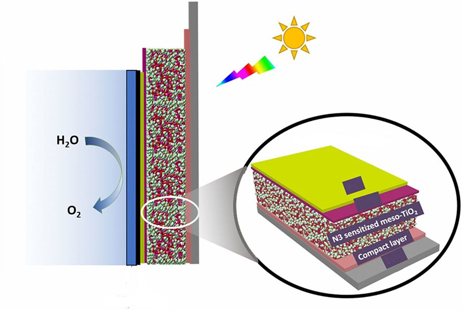 Green leafy plants readily convert sunlight into energy-dense fuels. Conventional solar cells don't. Why not? A key reaction, splitting water into oxygen and hydrogen, only occurs under harsh conditions that damage the cell's materials. Specifically, water splitting occurs under strongly oxidizing conditions (the same type of conditions that cause iron to rust). Researchers designed a dye-sensitized solar cell that can withstand these tough conditions. It exhibits good current density and is more stable than its predecessors. In the new design, the team coated the molecular components of the solid-state cell with a thin (2 nanometers) titanium dioxide layer. At first, the coating hampered the cell's performance a bit. To offset the performance loss, the team uncoupled the dye from the solid-solution interface. This change allows the use of dyes that absorb more light (working in the visible range). Also, it lets scientists optimize the pH to more efficiently split water. This research is an important step forward in solar-driven water splitting. The design takes advantage of science developed within the Department of Energy's Solar Photochemistry program and related Energy Frontier Research Centers over the past two decades.