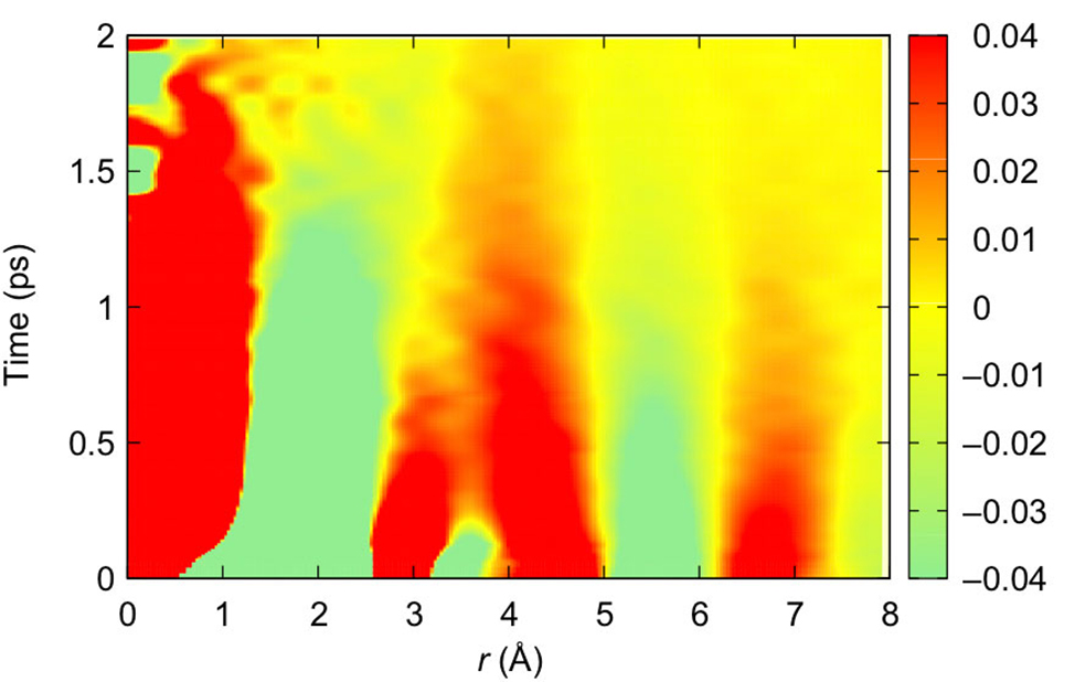 Viscosity is one of the most fundamental physical properties of a liquid. Yet, its atomic and molecular origins are not well understood. Recently, researchers have used new instrumentation developed for inelastic X-ray scattering studies of materials to determine the molecule-molecule correlation of water molecules, in real space and real time. The researchers related these interactions to water's viscosity. Scientists have used inelastic X-ray and neutron scattering techniques to observe the behavior of materials at atomistic length and time scales. The scattering data are typically presented in momentum and energy space. Then, the data are brought to real space and real time in the form of the Van Hove function (see figure). In this study, researchers looked directly at inelastic X-ray scattering data of water in real space and real time and measured the time-dependent molecular motion. Using the Van Hove function, they determined the time required to change the neighbor of a water molecule (which is directly related to its viscosity) was less than a picosecond. The team found that the time scale was directly related to the Maxwell relaxation time and viscosity, which was predicted by an earlier simulation. This demonstration shows that it is possible to determine rheological properties of various liquids from direct measurements of the molecular dynamics.