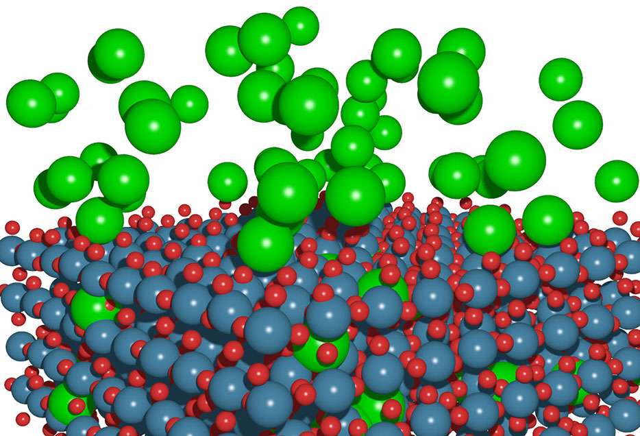 Water splitting, which generates hydrogen and oxygen gas, plays a key role in renewable energy technologies by producing molecules that can be used as fuels or as feedstocks to prepare high-value chemicals. However, the slow kinetics of one step involved in the process of water splitting, known as the oxygen evolution reaction, limits the performance and commercialization of the process. Additionally, proton exchange membrane electrolyzers, which are critical components of devices that carry out water splitting, require acid-stable catalysts. Scientists at Stanford University and SLAC National Accelerator Laboratory developed an iridium oxide/strontium iridium oxide (IrOx/SrIrO3) catalyst that is formed during electrochemical testing by strontium leaching from surface layers of thin films of SrIrO3. The group demonstrated that the catalyst remains active for 30 hours of continuous cycling in the presence of an acidic electrolyte, indicating remarkable stability. Theoretical calculations using density functional theory suggest highly active IrOx surface layers that form during strontium leaching are responsible for the impressive activity and robustness. Further, the calculations suggest IrO3 or anatase-IrO2 overlayers are particularly active for oxygen evolution reactions and favorable to form from the SrIrO3 precursor. The IrOx/SrIrO3 catalyst outperforms known iridium and ruthenium oxide (IrOx and RuOx) systems, the only other oxygen evolution reaction catalysts that have reasonable stability in the presence of acidic electrolytes. The acid-stability and high intrinsic activity of the catalyst show promise for its integration into renewable energy technologies.