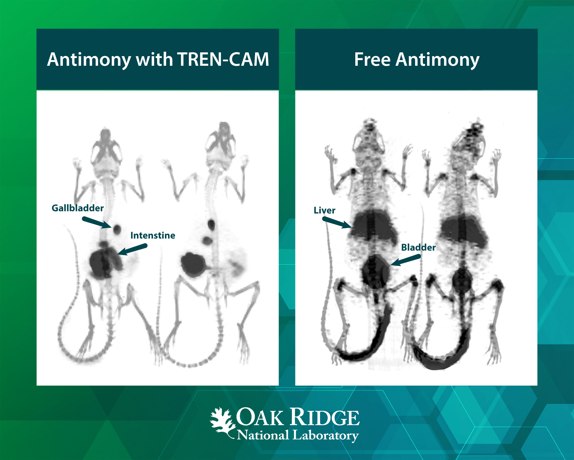 Sb-119 holds great promise for treating cancer because it releases short-range electrons that can damage cancer cells. However, using it in medicine requires a stable carrier. In this study, scientists investigated a new approach to binding antimony to influence its chemical behavior. TREN-CAM is a chelator designed to securely hold metal ions and prevent them from breaking down or moving unpredictably in the body. When TREN-CAM binds with antimony, it creates a robust molecular cage that maintains control of the radioactive element inside living organisms. Through laboratory experiments and studies in mice, researchers confirmed that the antimony/TREN-CAM complex stays largely intact in living systems. They were able to see that organ uptake for the complex is different than organ uptake observed for antimony without the TREN-CAM molecule. This stability ensures that the radioactive material stays at the tumor site long enough to be effective. The ability to image antimony in the body makes it useful for tracking treatment progress. This breakthrough in chelation chemistry opens new possibilities for using radioantimony in nuclear medicine.